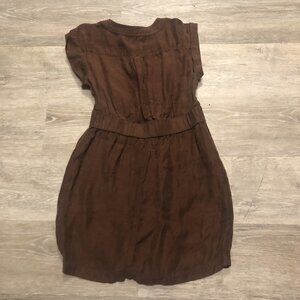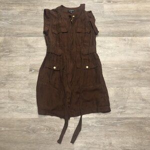 J. Crew Womens SZ 4 Brown Tie Waist Mini Shirtdress Sleeveless Linen Blend Dress