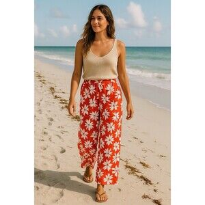 J Crew Women’s Satin Tropical Floral Wide Leg Pants Boho Resort Wear Sz 12 NEW
