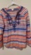J Crew Women's Shirt Med Pullover Cotton Blouse Aztec Print Coral Blue Top Small