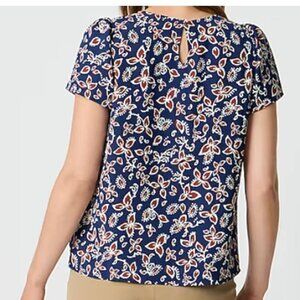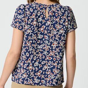 J Crew Women's Short Sleeve Crepe Top Classic Blue Floral Print