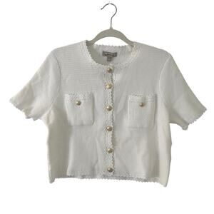 J. Crew Women's Short Sleeve Gold Button Sweater Lady Jacket L Large New