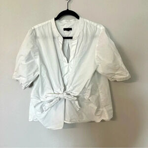 J. Crew Women’s Short Sleeve White V-Neck Tie Front Style Casual Top Sz XL GUC