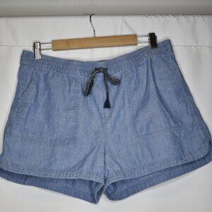 J Crew Women's Shorts Elastic Drawstring Blue Pockets Lightweight Cotton
