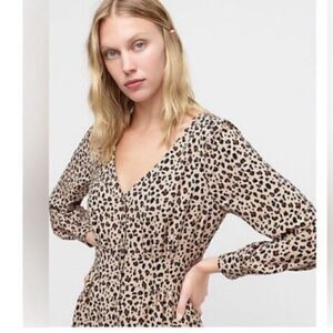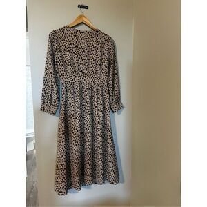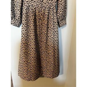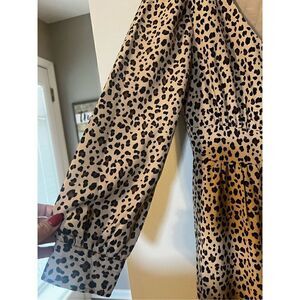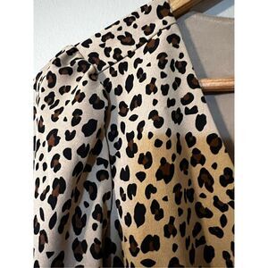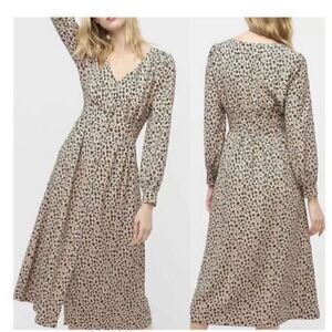J Crew Women’s Size 0 Button Front A Line Midi Dress Tan Black Leopard Print
