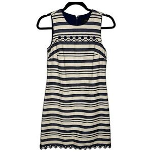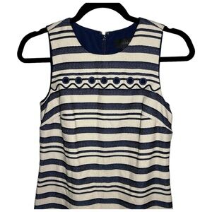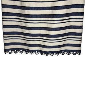 J. Crew Women's Size 00 Striped Scalloped Sleeveless Dress Grommets Navy Beige