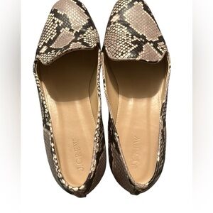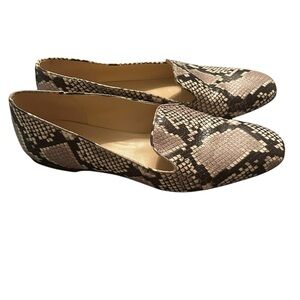 J. Crew Womens Size 11Flat Shoes Smoking Loafers Black Gray White Faux Snakeskin