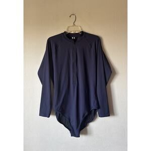 J Crew Women’s Size 16 Navy Blue Long Sleeve Zip Swimsuit Coastal Preppy Swim