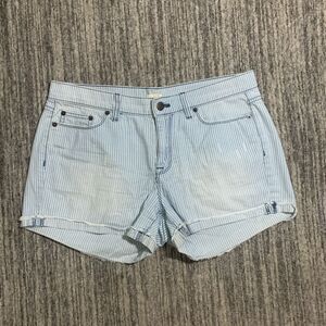 J. Crew Women's Size 27 Blue White Striped Stretch Mom Shorts Cuffed Hems