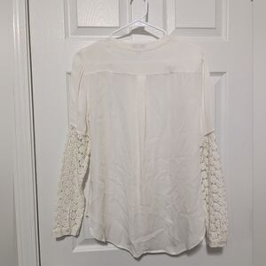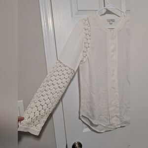 J. Crew, Women's Size 4, 100% Silk Button Down Blouse W/ 100% Cotton Lace Detail