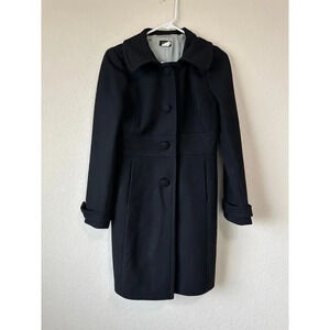 J. Crew Womens Size 4 Black Lady Day Coat Double Breasted Long Sleeve Wool Blend Peacoat