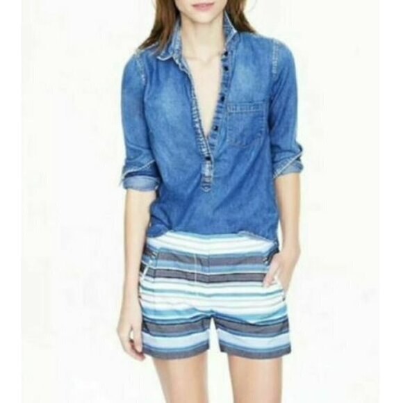 J. Crew Womens Size 4 Blue Striped Textured Mini Pleated Shorts Pockets Boho