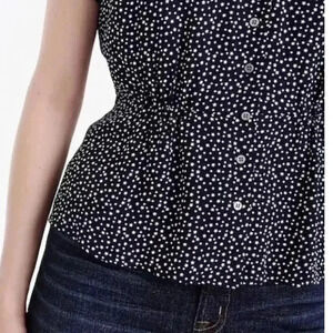 Women's J. Crew Peplum Top Size 4. Navy Blue & White Star Print in a Short Sleeve Button Up made of 100% Viscose. Style J1462. Gently Used.