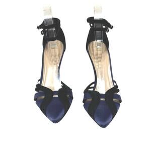J. Crew Women’s Size 8.5 Roxie Suede + Satin Ankle-Strap Pumps Navy + Black