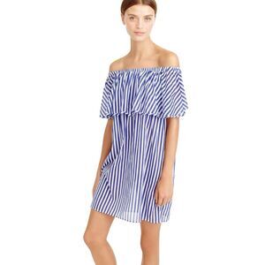 J. Crew Women's Size LARGE Off Shoulder Ruffle Striped Beach Cover Up Dress