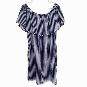 J. CREW OFF SHOULDER RUFFLE STRIPED BEACH COVER UP DRESS. GREAT BREEZY BEACH DRESS. SIZE LARGE