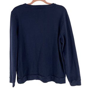 J. Crew Women's Size Large Navy & Coral Pink "Merci" French Graphic Crew Neck Sweatshirt