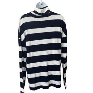 J. Crew Women's Size Medium Turtleneck Sweater Navy White Stripe Long Sleeves