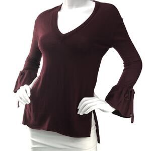 J Crew Womens Size XXS Sweater Merino Wool Bell Sleeve High Low Hem V Neck