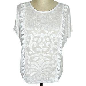 J. Crew | Womens Size XXS White Embroidered Tassel Linen Top
