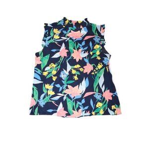 J. Crew Womens Sleeveless Ruffle Neck Top 4 Navy Floral Print Blouse Cottagecore