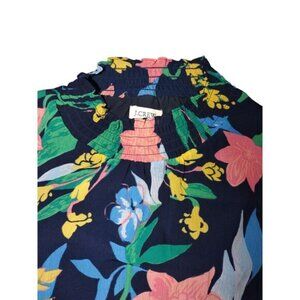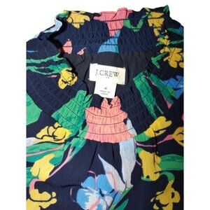 This J. Crew women’s sleeveless blouse in size 4 features a bold multicolor floral print on a navy background 🌸🌿. Designed with a ruffle mock neckline and lightweight fabric, it’s perfect for adding a vibrant touch to your summer, vacation, or office wardrobe.
