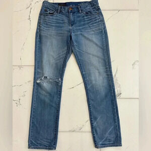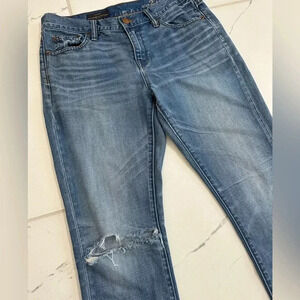 J Crew Womens Slim Broken In Boyfriend Jeans 27 Blue Distressed Ripped Mid Rise