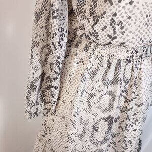 J Crew Womens Snake Print Long Sleeve Ruffle Hem Smocked Waist Dress M