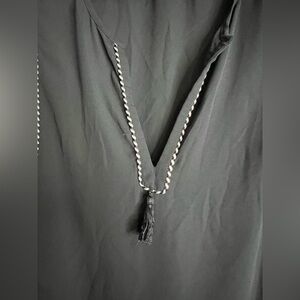 J. Crew Women's Split Neck Blouse with Tassel Trim - Black - Size 10