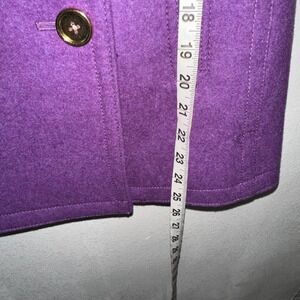 The J Crew Women's Stadium Cloth Majesty Peacoat in size 0P is a luxurious and stylish outerwear piece perfect for the colder seasons. Made with high-quality wool and cashmere materials, this coat offers both warmth and sophistication. The deep purple color adds a pop of color to any outfit, making it a versatile and chic addition to any woman's wardrobe. The cashmere lining adds an extra touch of luxury and comfort, making it a must-have for those looking for a timeless and elegant coat.