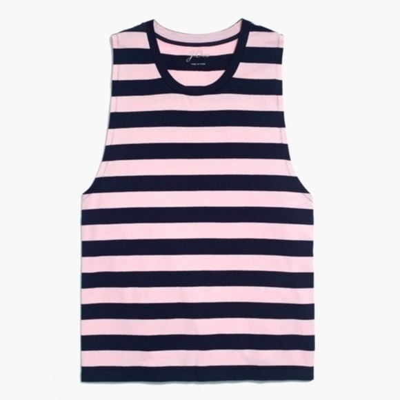 J Crew Womens Stripe Oversized Muscle Tank Top Medium M Pink Blue.