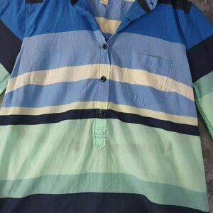 J. Crew Womens Striped Long Sleeve S Blue Green Popover Color Block Academia