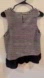 Black and white stripes tank top with a ruffle hem detail and key-hole button back. Crew neck, slightly loose fit.