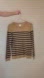 Stylish J. Crew sweater with bold black stripes on tan. Perfect for casual wear.