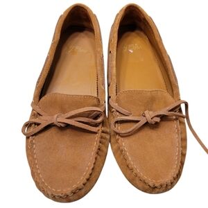 J Crew Womens Suede Driving Shoe Loafer Mocassin Style L0155 Size 7 Tan Brown