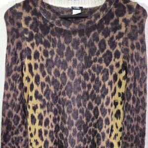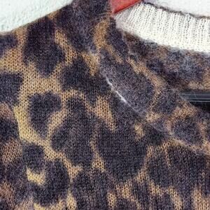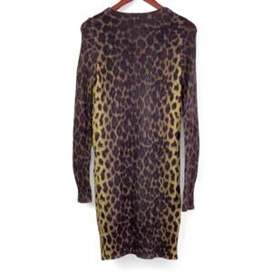 J Crew Women's Sweater Dress Brown Boho Leopard Animal Print Mohair Sz Small