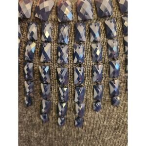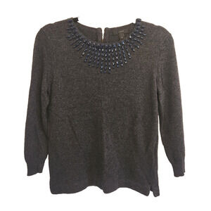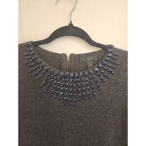 J Crew Womens Sweater Gray Wool Blend Blue Jeweled Neckline Top Extra Small