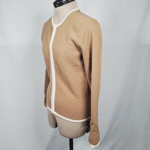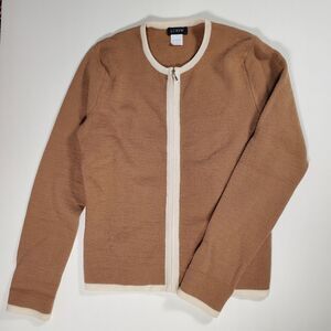 J Crew Women's Sweater Small Brown Merino Wool Long Sleeve Full Zip Classic