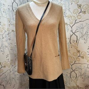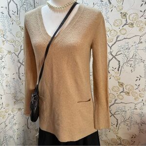 J. Crew Women’s Sweater Sz XS Merino Wool/Alpaca Blend Pockets V-Neck Beige