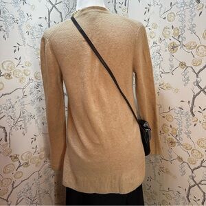 This J.Crew women's sweater in size XS features a v-neck and is made from a blend of merino wool and alpaca, giving it a cozy and warm feel. The sweater has a classic and preppy style, with a solid beige color and raglan sleeves. It has a tight-knit fabric type and comes with the added convenience of pockets. This versatile sweater is suitable for various occasions such as travel, casual outings, or even business settings in the fall, winter, or spring seasons. It’s marked XS, but can fit up to M, depending on how loose or tight you want it to be. Please see pictures for details and measurements. Only the sweater is included in this listing. The other accessories are separate listings.