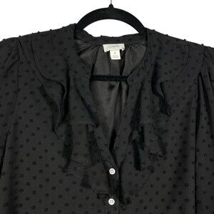 J Crew Womens Swiss Dot Ruffle Blouse Size S Black Dark Coquette Victorian Goth