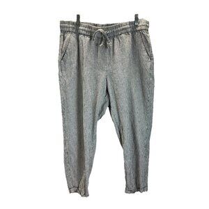 J. Crew Women’s Sz 14 Linen striped Cropped Pants beach casual pull on pockets