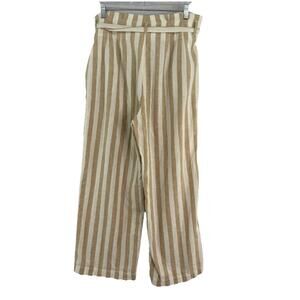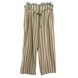 J Crew Womens Sz 6 Tan & White Stripe Linen Blend Paper Bag Waist Wide Leg Pants