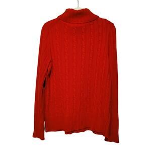 J Crew Womens Sz L Orange Red Cable Knit Turtle Neck Sweater Viscose Angora Wool
