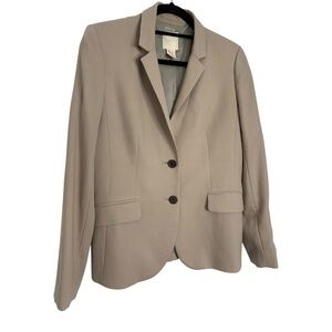 Elegant tan blazer with a classic design. Features two buttons and front pockets. Perfect for professional settings.