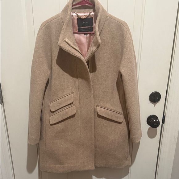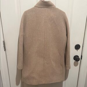 Stylish tan pea coat with a tailored fit. Features a classic collar and front pockets.