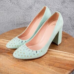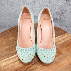 J. Crew Women's Teal Turquoise Suede Studded Crystal Pumps Size 7.5
