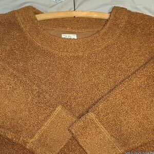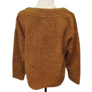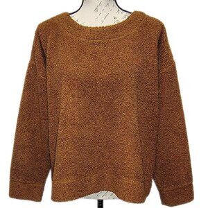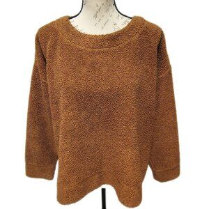 J Crew Womens Teddy Cropped Sherpa Pullover Sweater XL Brown Cozy Fall Academia