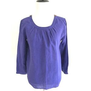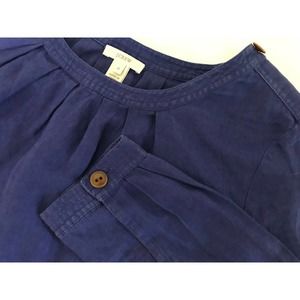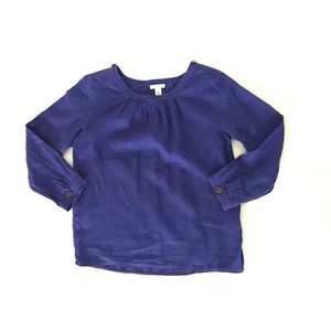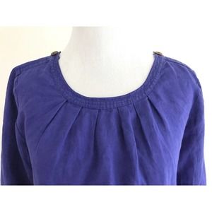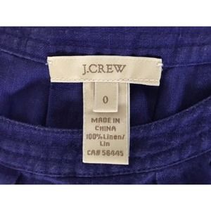 J Crew Tessa Top Size 0 Loose Blouse 100% Linen 3/4 Sleeves Pleated Shirt Blue