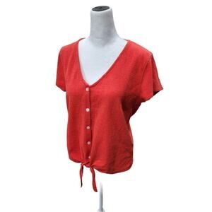 J. Crew Women's Textured Tie Front Top Size Medium Red Button Front V Neck