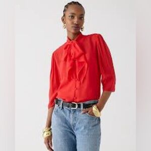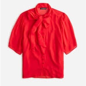 J Crew Women's Tie neck button up top in sheer chiffon For Vintage Red BY682